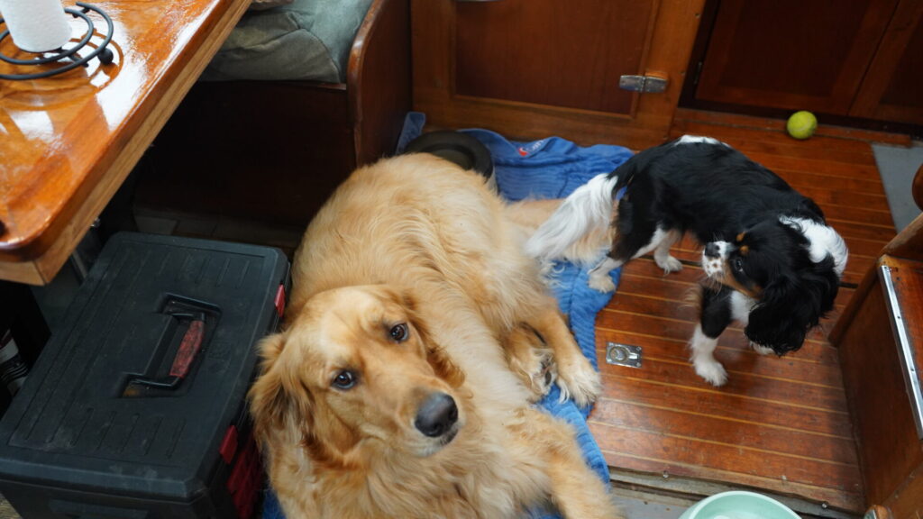 The dogs are so happy on the boat and if they even think that we are going, they are super excited and completely exhausted by the end of the weekend. They are all living their best lives right now and I couldn't be any happier with them and the way they are on the boat. One thing they don't like (except for George) is that they can't jump on the bed and sleep with us. They have to sleep on the floor however, it's not all bad for them. They get all kinds of people food and treats and they do have some of their blankets on the floor to help them sleep.