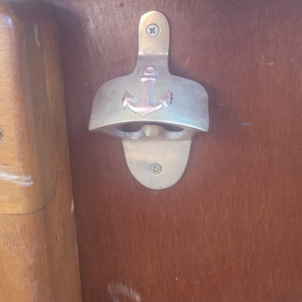 Things that were completed this month are the following items: Andy completed the provision boxes that were created in the empty space between the hull and the floor so this made for some wonderful storage. I have 4 new boxes to be able to add provisions and supplies. They are looking great! We had "Joe" back on the boat to assist with working on the wood paneling in the forward cabin. Andy also added the fans that we had and we found this really cool bottle opener that we found on board and attached it. Now we can open bottles. We also did our 1st hull cleaning on the boat. It seriously needed it since there was no cleaning done since we splashed in the water back in Sept. All in all, it wasn't that bad and we were able to get most of it done ourselves.